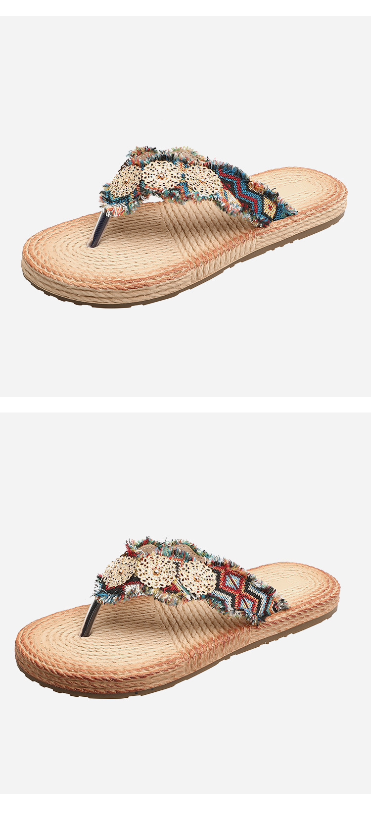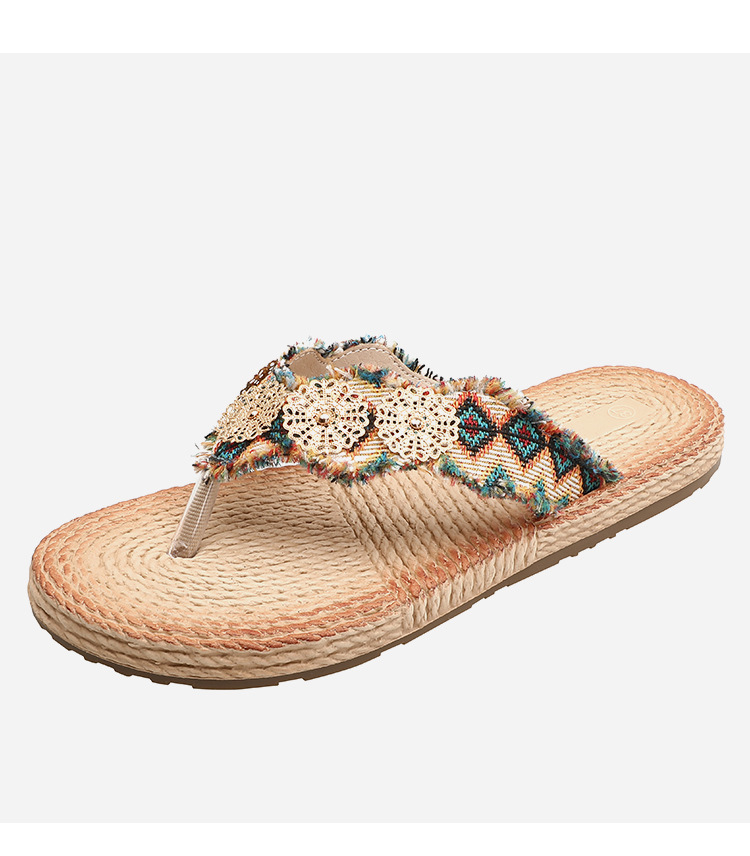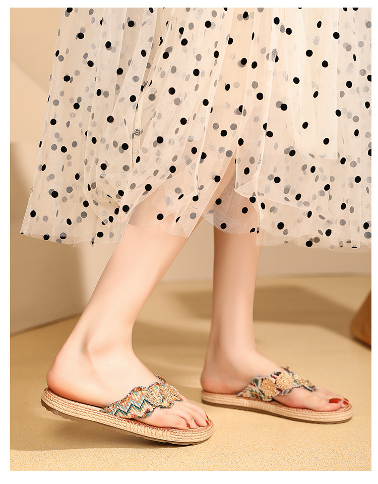 夏の快適リネンアウターフラットスリッパ クリップバックルサンダル クリップオンリネンシューズ
